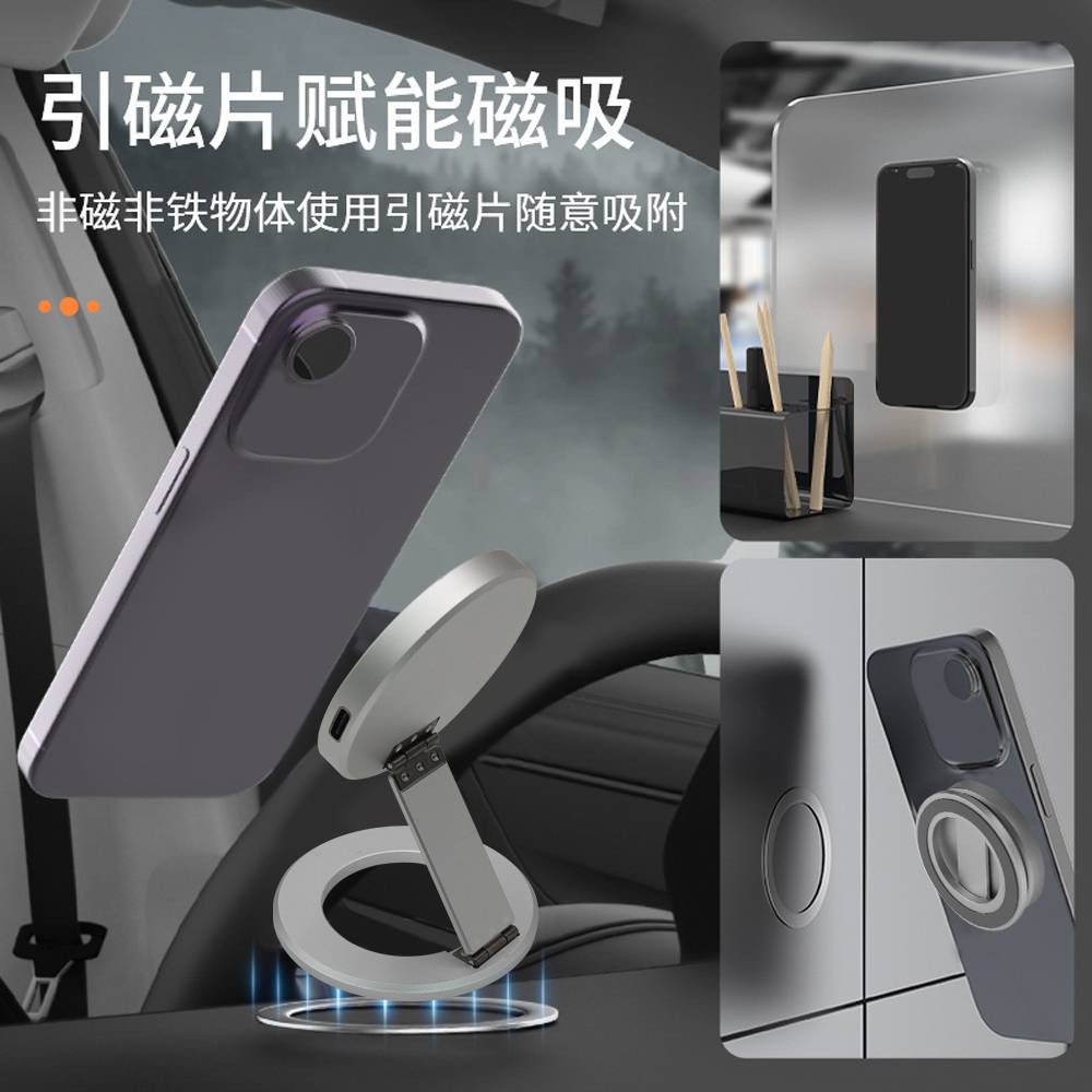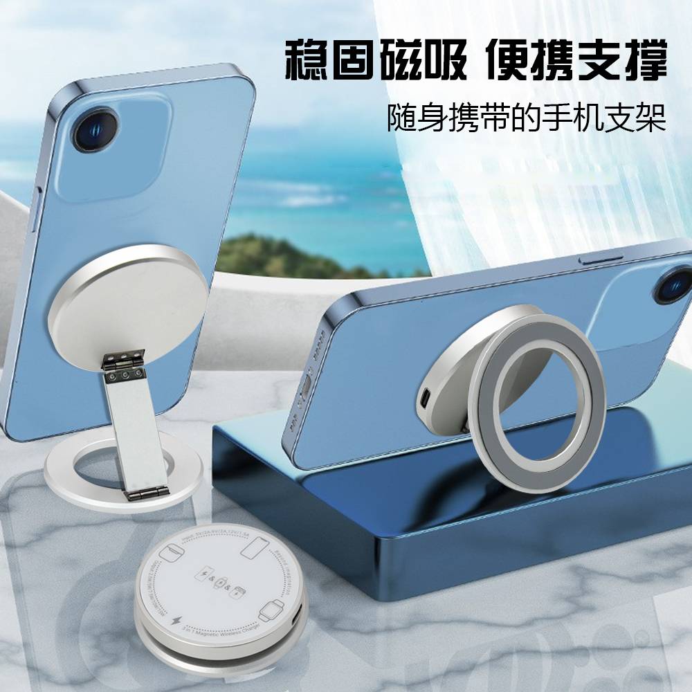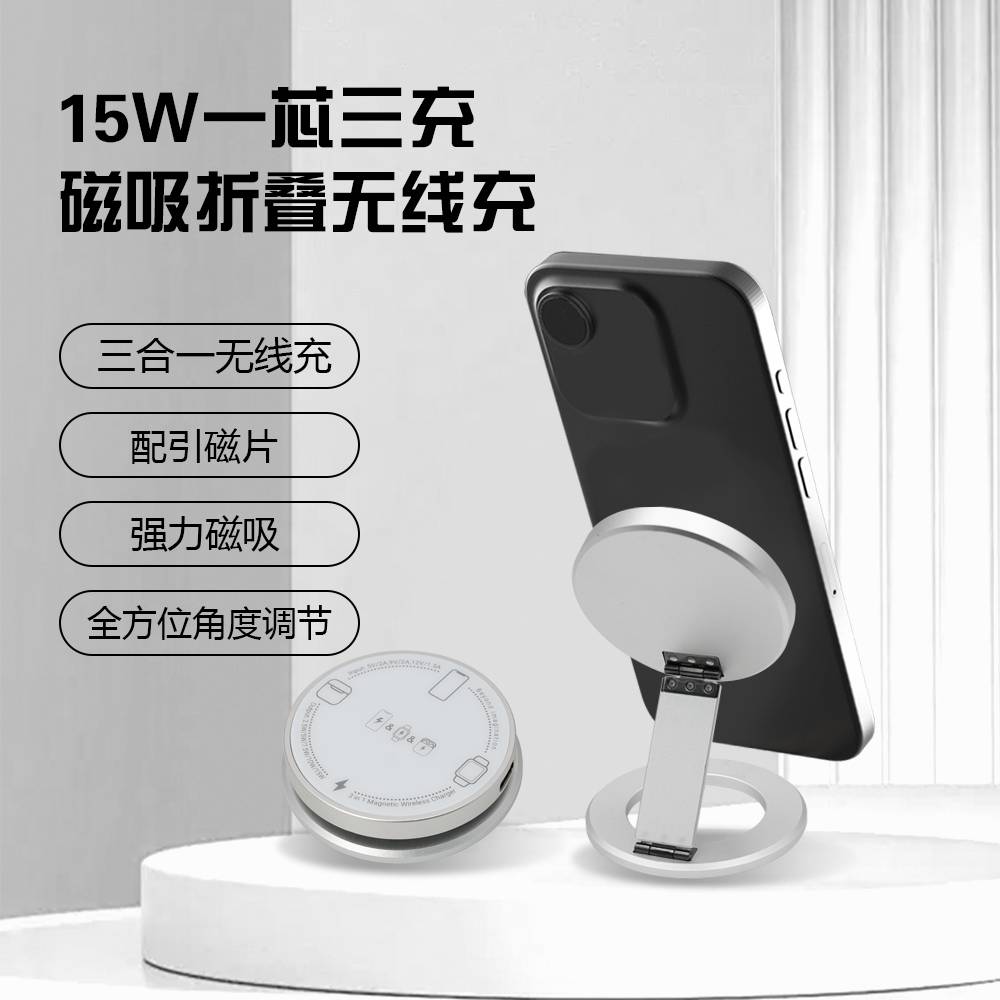 15W可折叠磁吸支架无线充 铝合金材质 可折叠收纳 便携款无线充