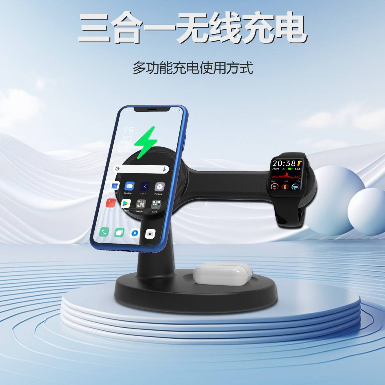 新款 三合一充电器无线磁吸充电器 多功能无线通用充电器无线快充