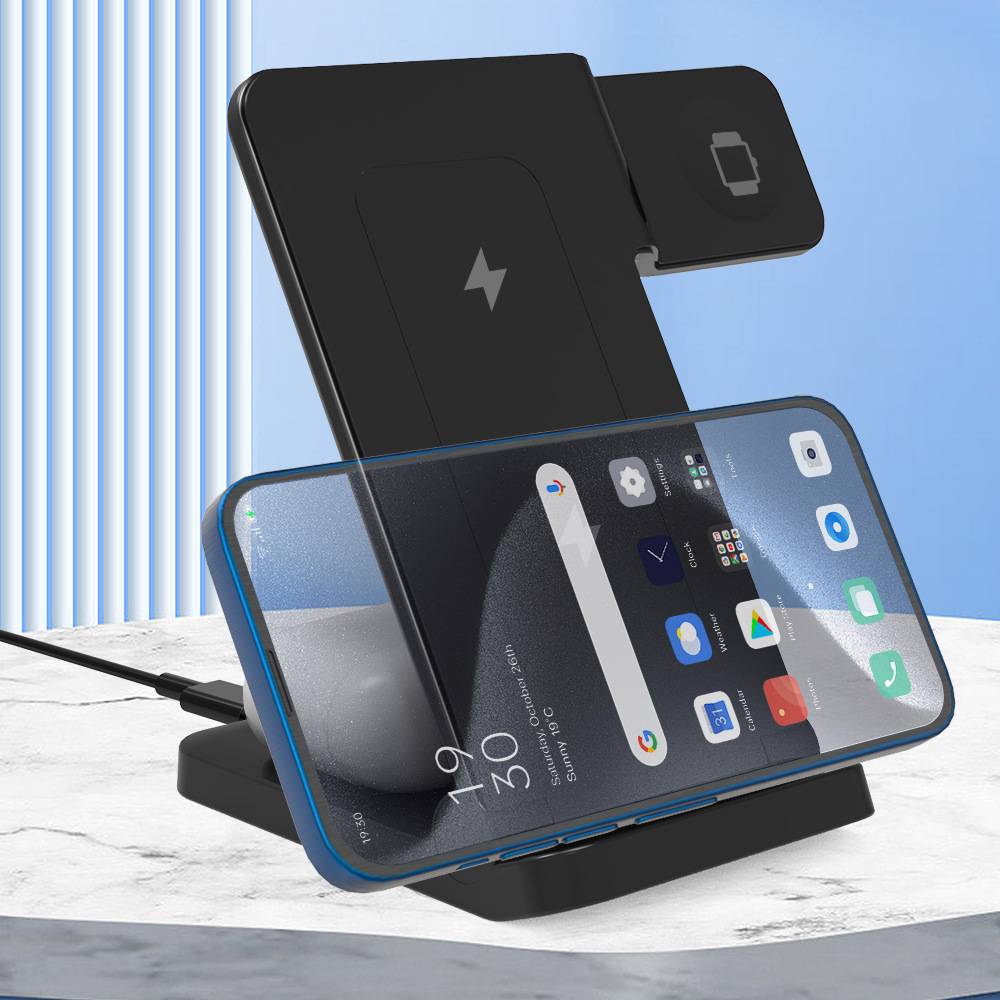 三合一无线充 桌面支架适用于手机手表耳机无线充电器 源头工厂