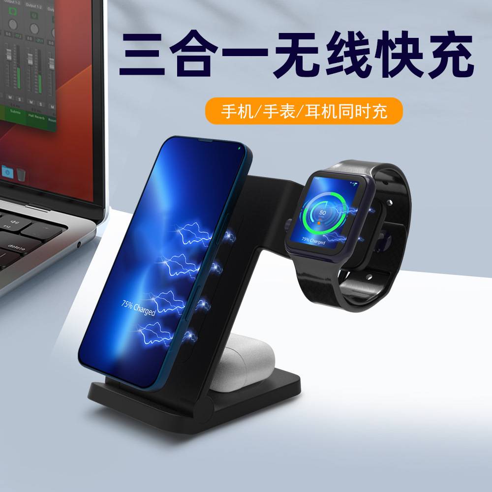 跨境新款三合一无线充电器适用苹果手机耳机手表快充15W无线充