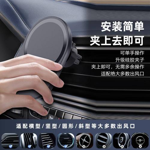 车载磁吸无线充电器跨境爆款适用苹果手机防抖15W快充无线充