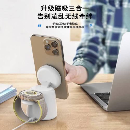源厂磁吸无线充电器三合一多功能底座支持手机手表耳机同步充电