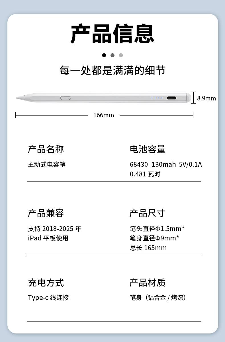 iPad专用笔电量显示款主动电容笔触屏笔