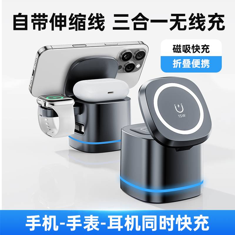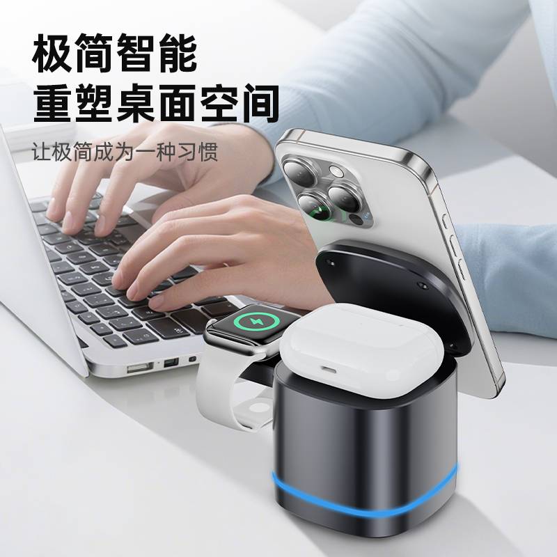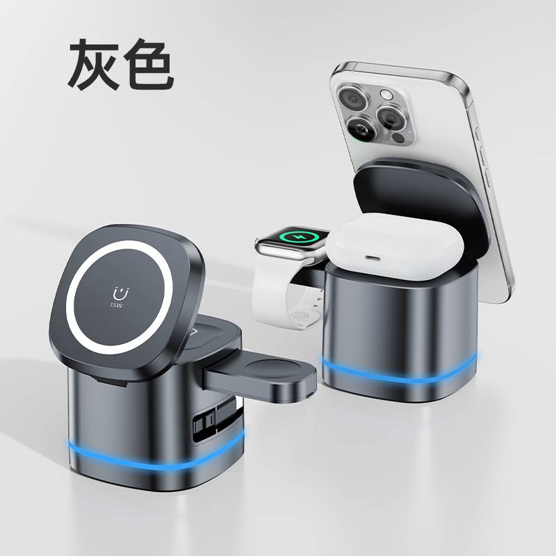 H49磁吸三合一无线充电器