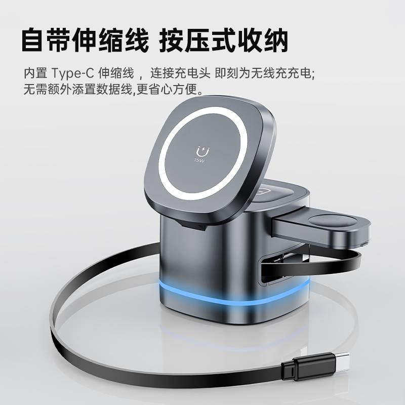 三合一无线充自带伸缩线 H32Pro