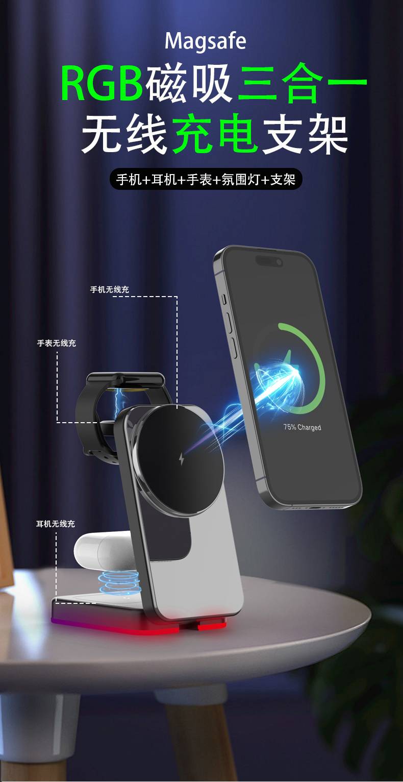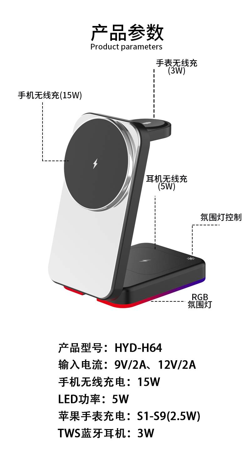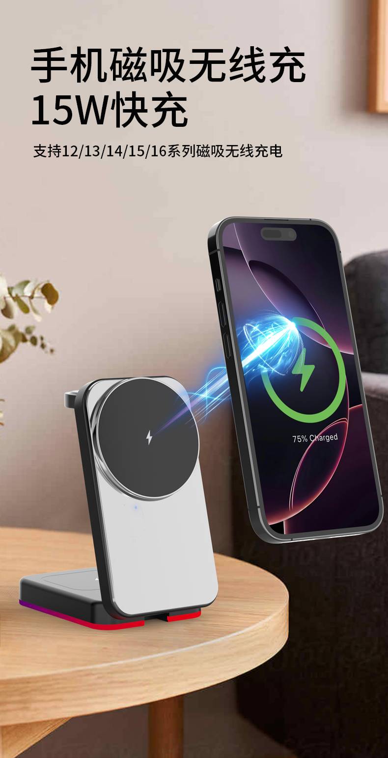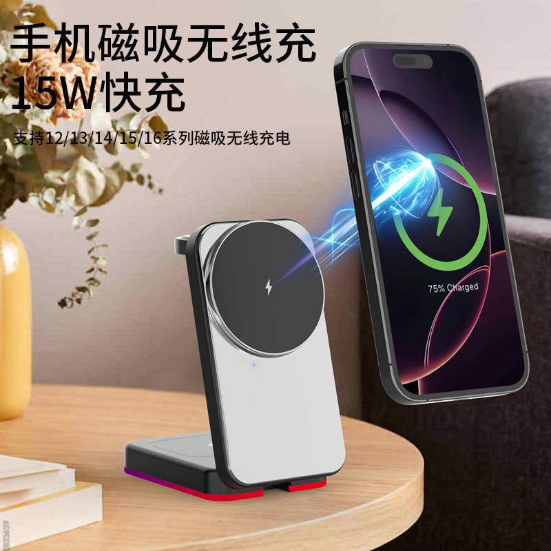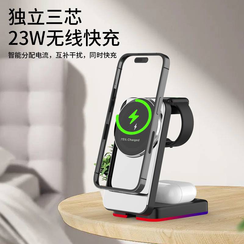 H64RGB磁吸三合一无线充电支架
