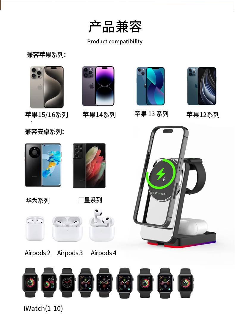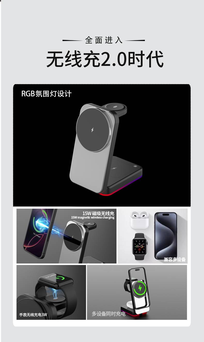 三合一立式无线充