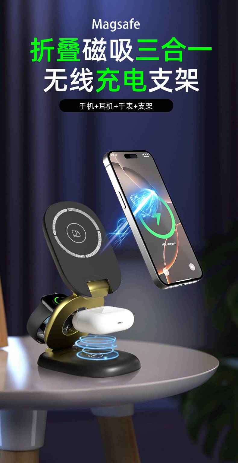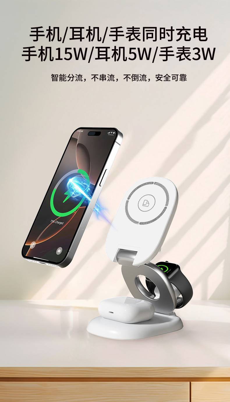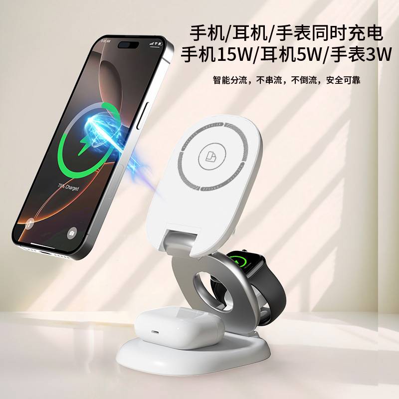 H63三合一磁吸无线充电器
