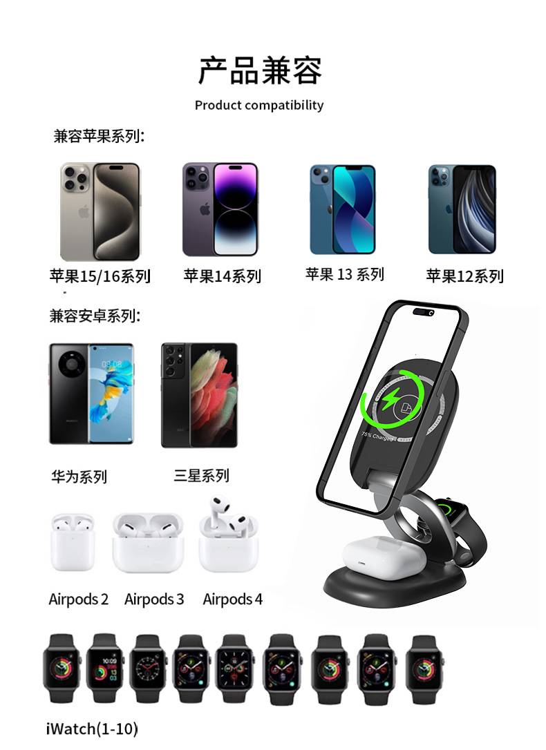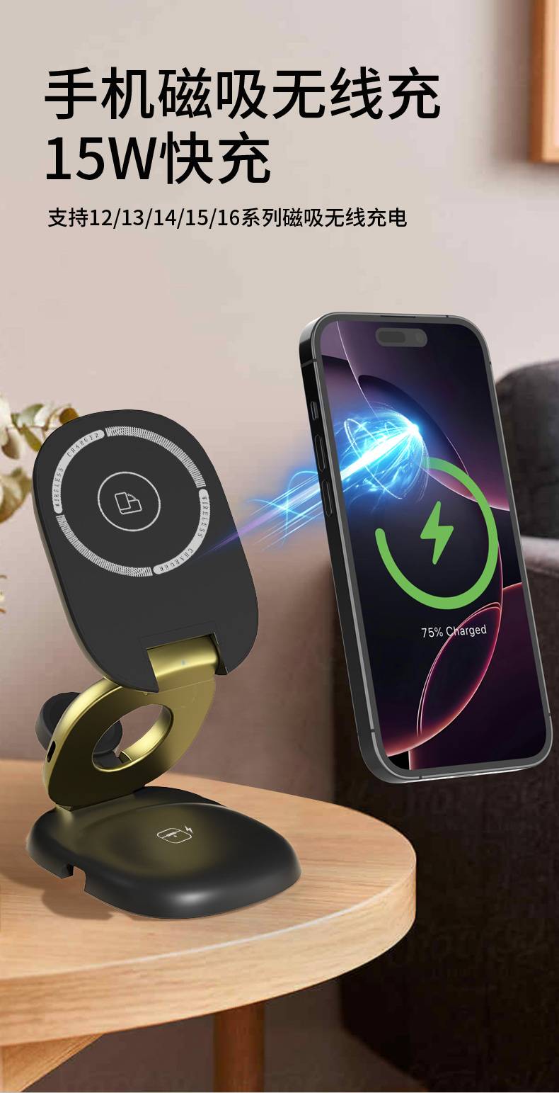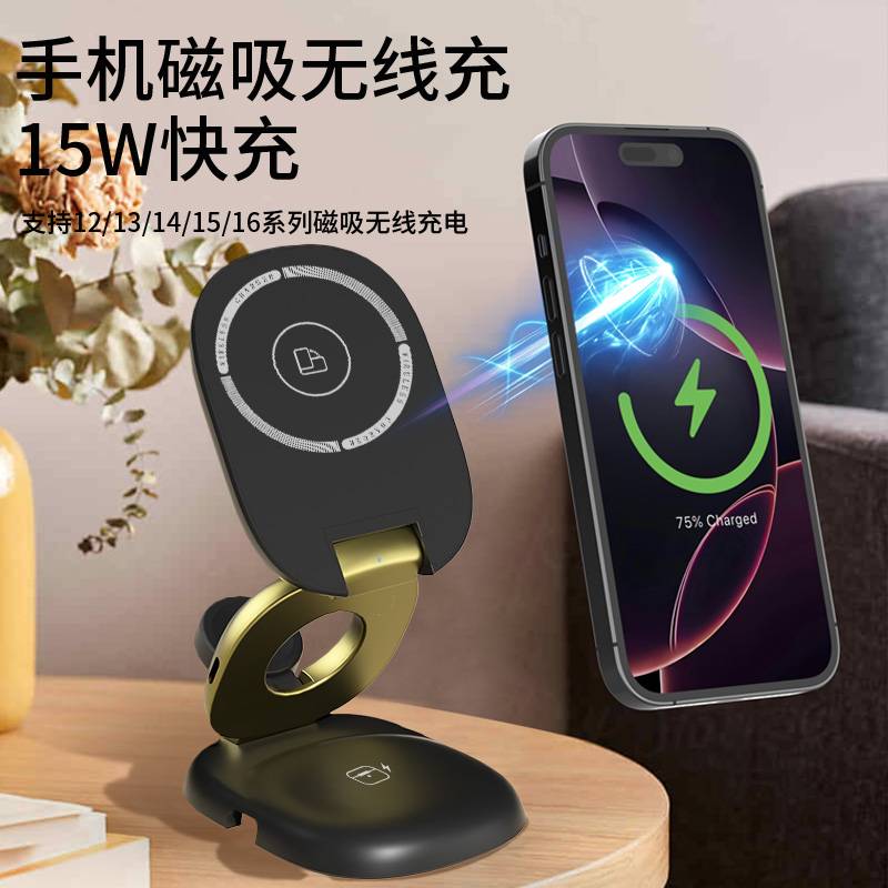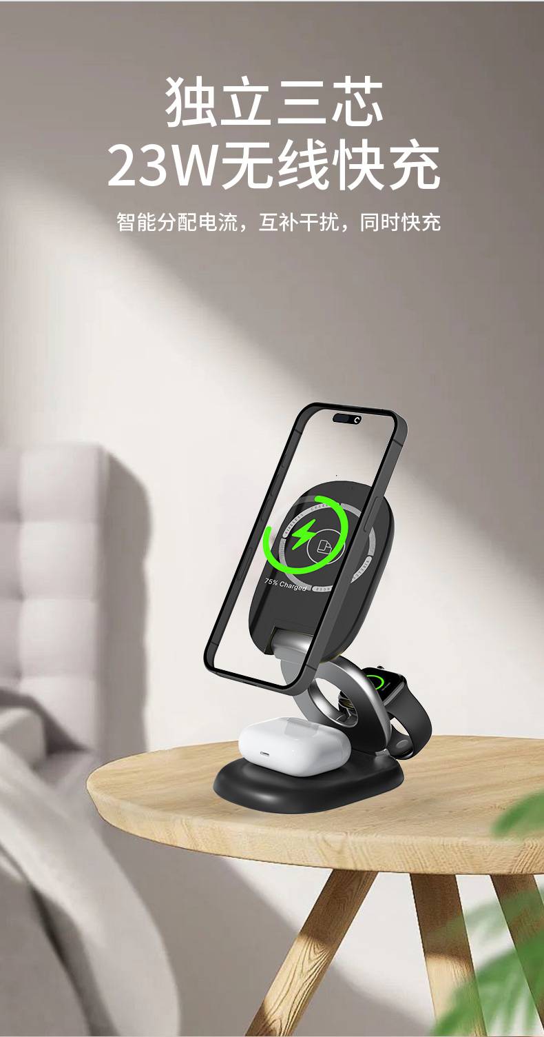H63三合一磁吸无线充电器