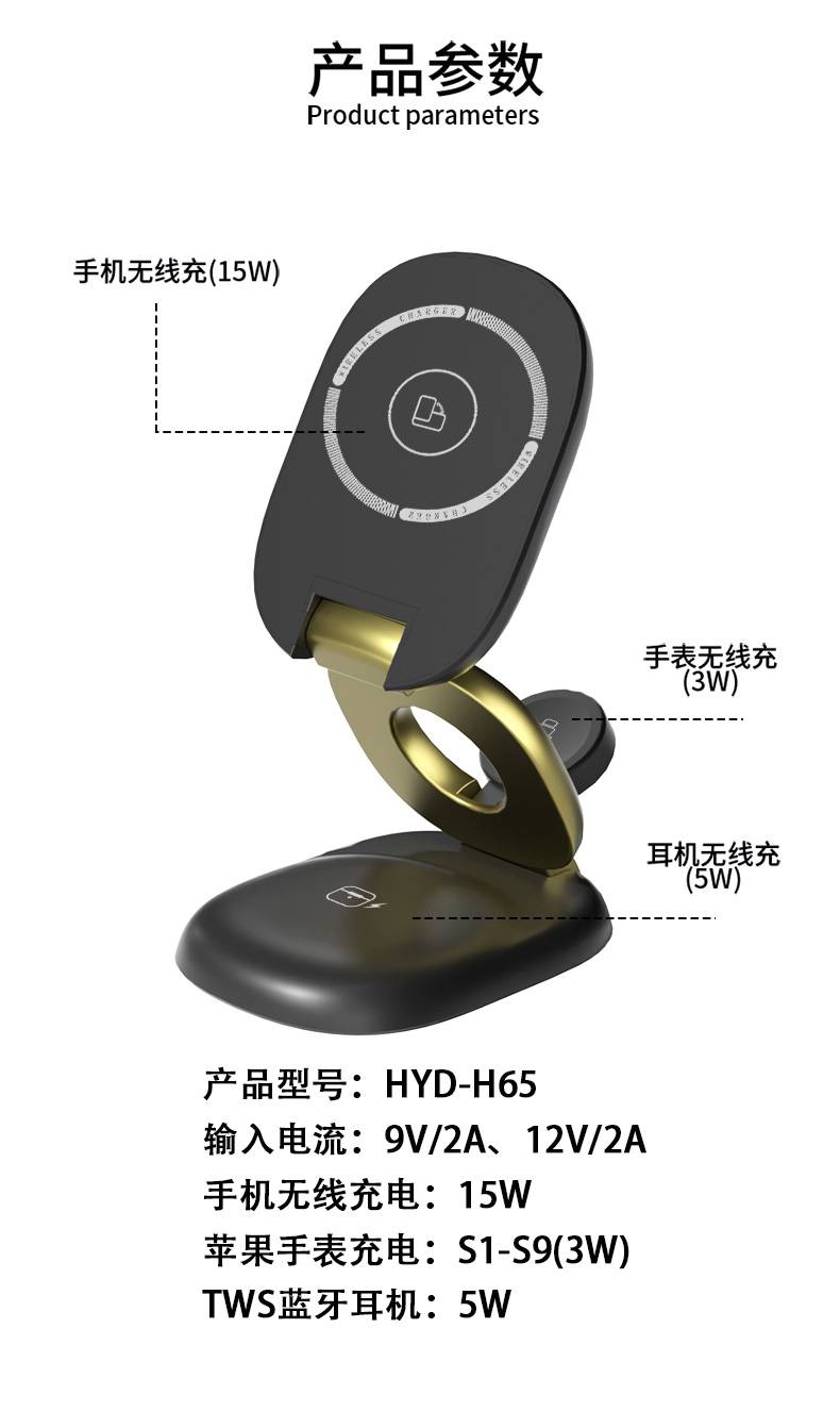 可折叠三合一无线充H22