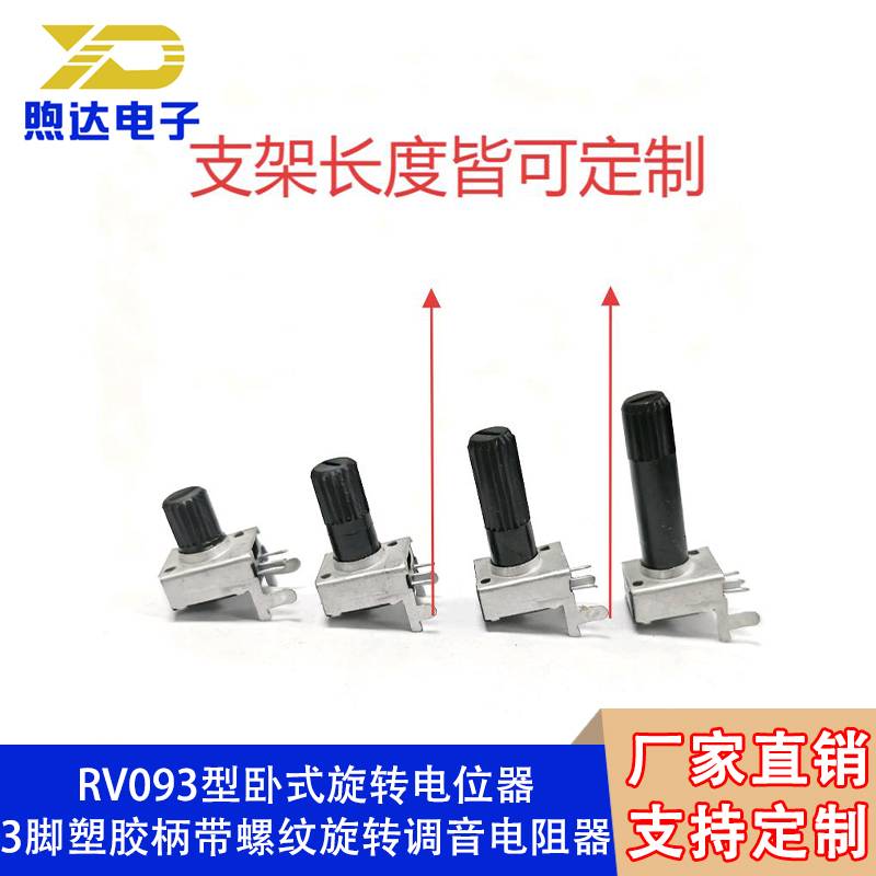 RV093型卧式旋转电位器3脚塑胶柄带螺纹旋转调音电阻器