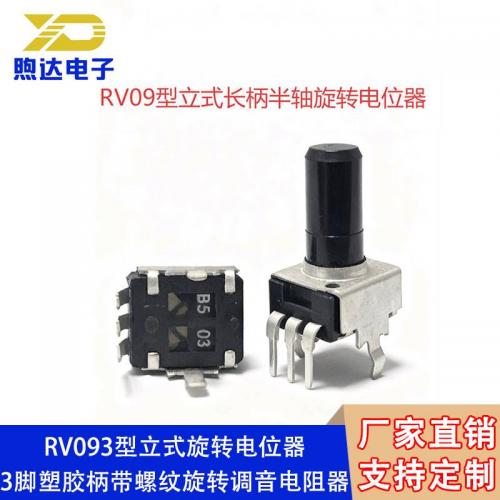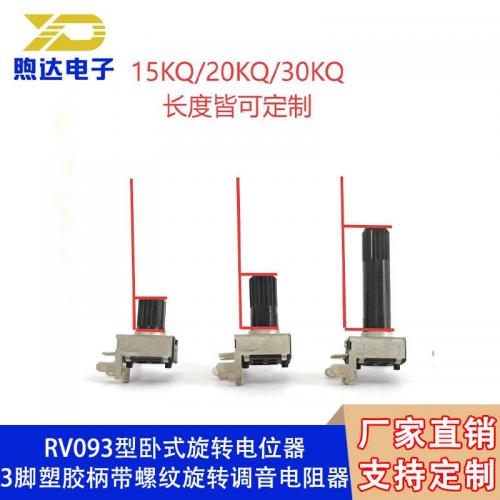 RV093型卧式旋转电位器3脚塑胶柄带螺纹旋转调音电阻器