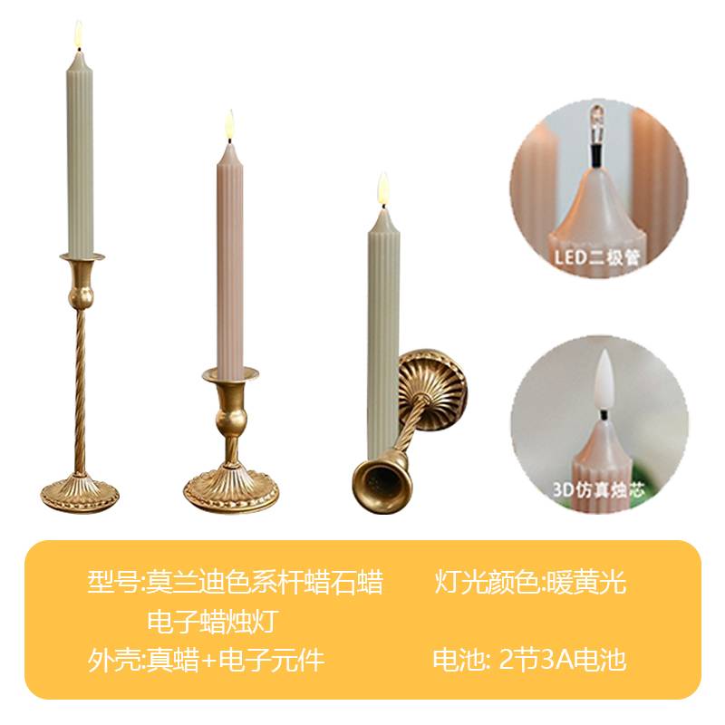 莫兰迪色系杆蜡石蜡电子蜡烛灯