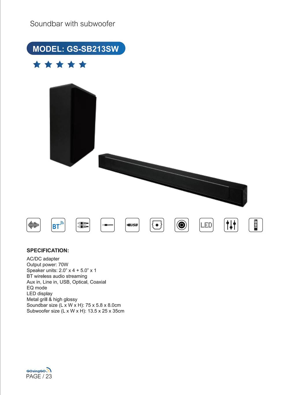 条形音箱 GS-SB213SW