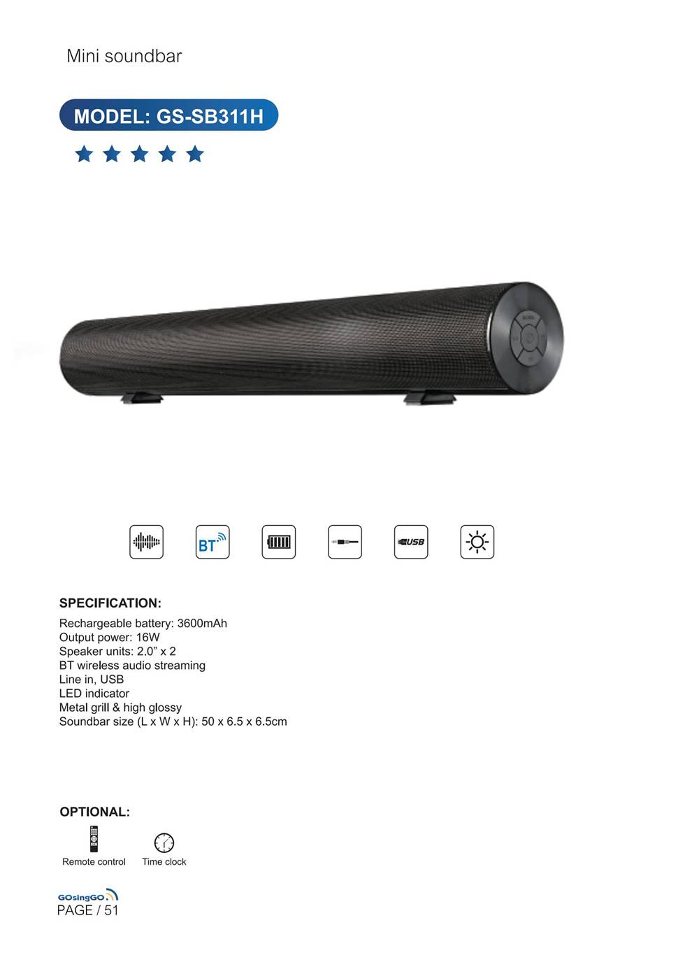 2.0条形音箱 GS-SB204L