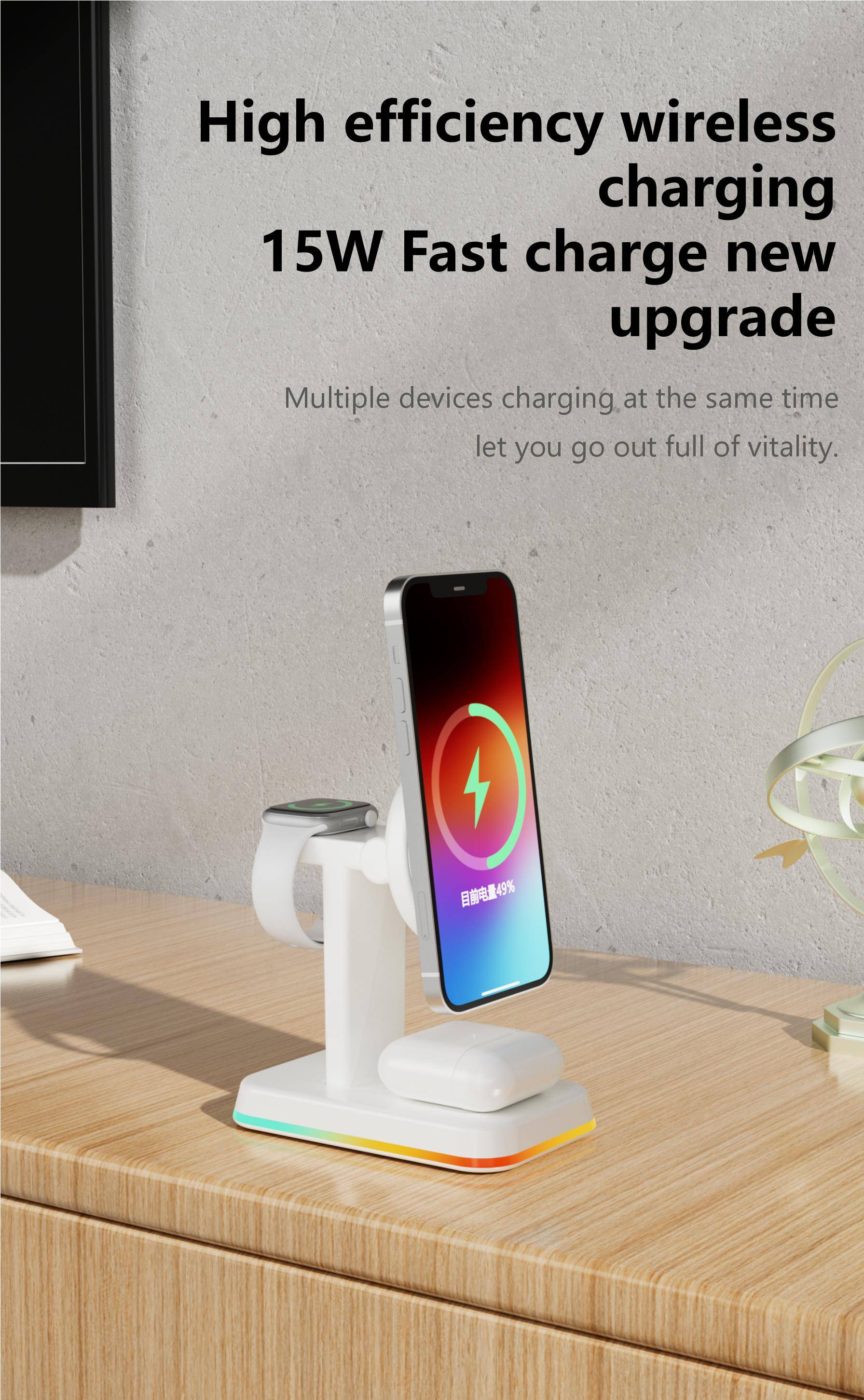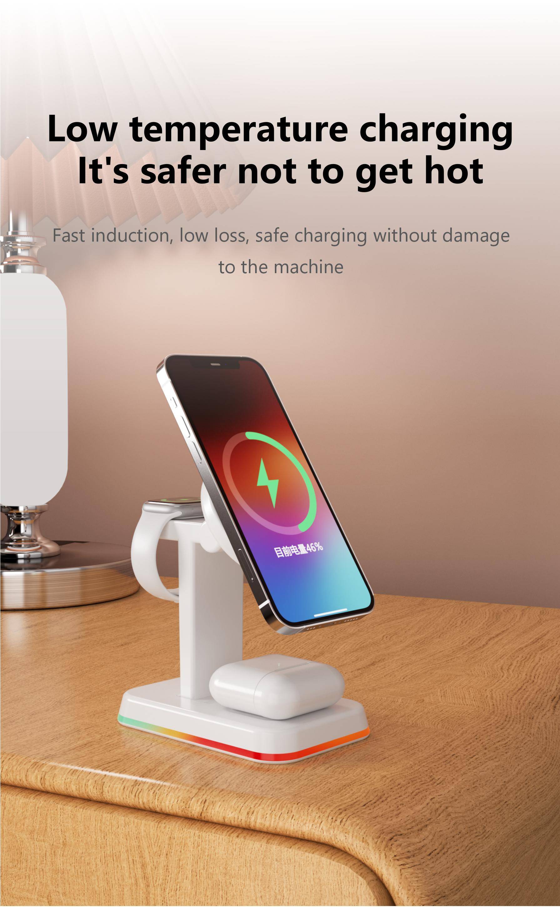 Three-in-One Wireless Charger with Built-in Extendable Cable H32Pro